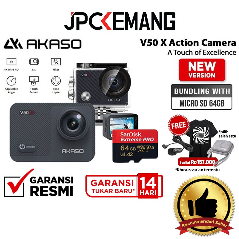 Akaso V50X Cube / New Version 4K Action Camera Free External Mic Type C + T-Shirt Atau Storage Mini Bag (Khusus Varian Tertentu) Garansi Resmi