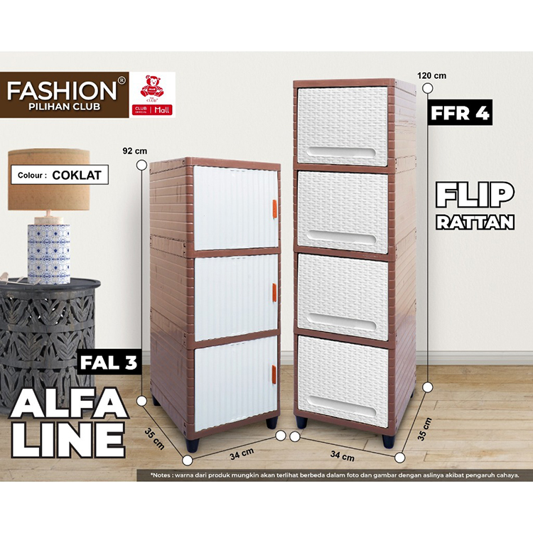 Lemari Plastik CLUB FASHION Single Susun 2 3 4 5 Lemari Plastik Serbaguna 1 Pintu Alfa Line Rattan Kuat Kokoh Tahan Lama