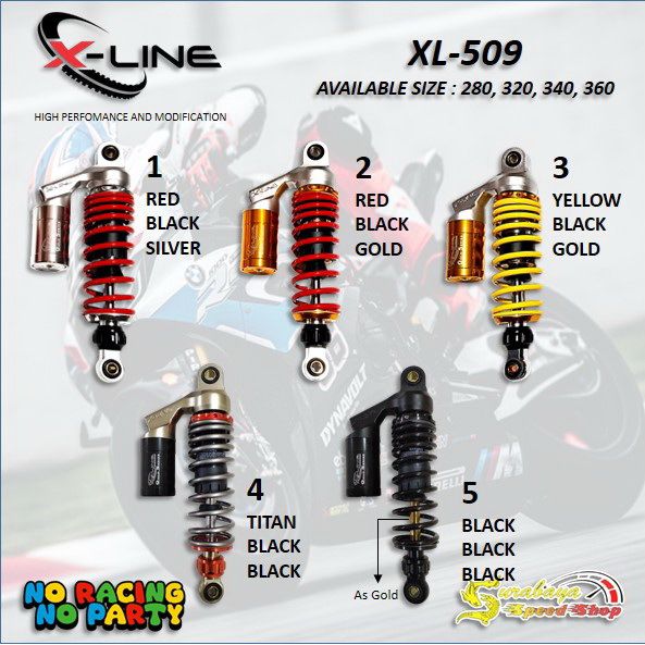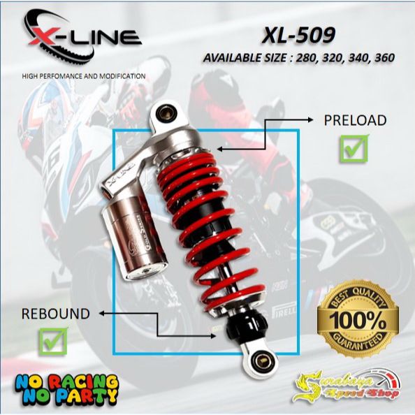 XLine Shockbreaker Belakang Click Tabung Atas 509 Suzuki Mega Pro Ukuran 280 320 340 360 Original