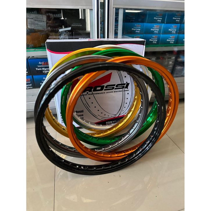 VELG ROSSI HITAM GILAP GLOSY SILVER PUTIH KUNING 90ld HIJAU9rEY TITANIUM ABU ABU ORANGE OREN 120 140 160 185 RING 17 18