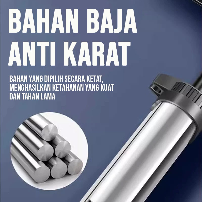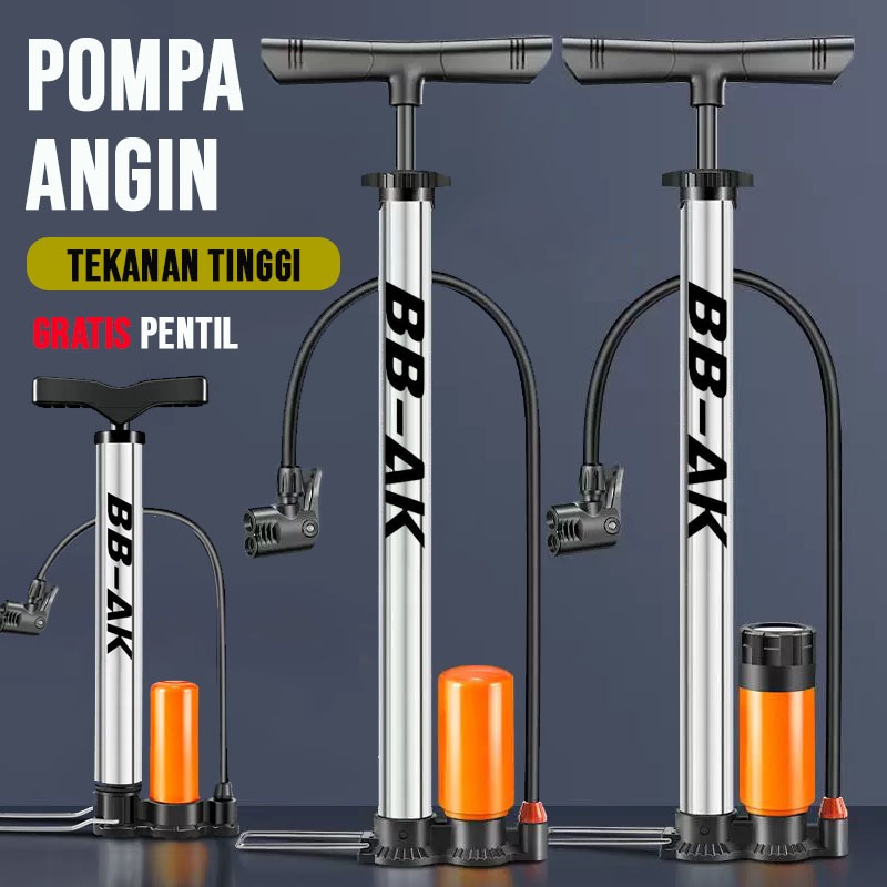 Pompa Angin Tekanan Tinggi Bahan Baja Tahan Karat Pompa Sepeda Motor Mobil Bola Dilengkapi Barometer GRATIS PENTIL