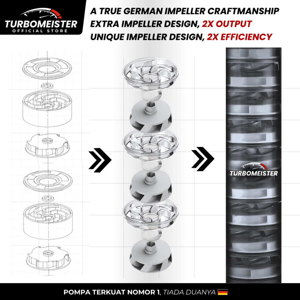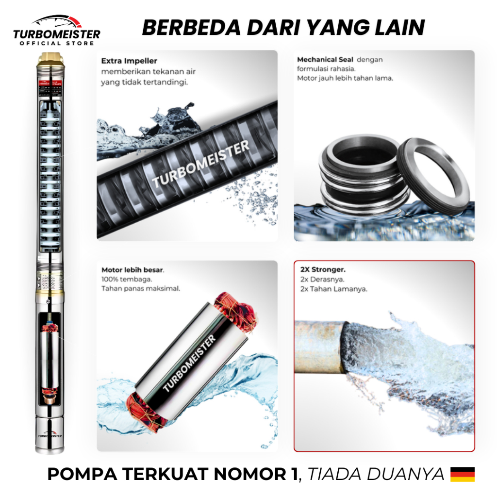 Pompa Satelit 3 Inch Turbomeister 0.5 HP - Pompa Submersible / Sibel - Sumur Dalam Maks 45 meter