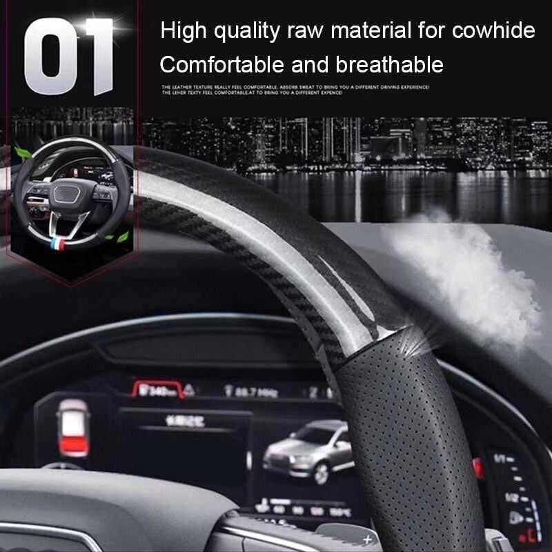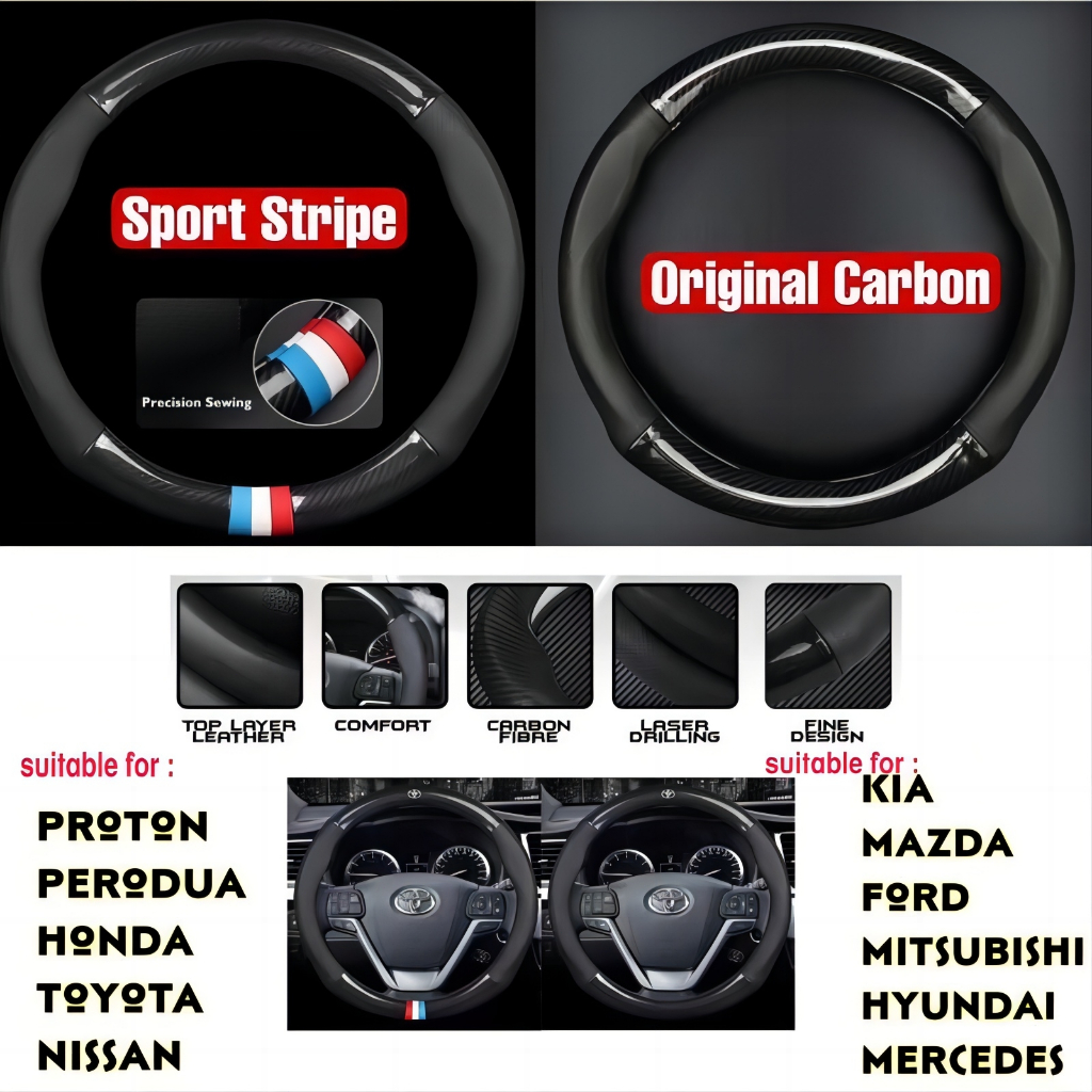 Sarung Stir Mobil Logo Brand Cover Steer Carbon Karbon Sport Kulit Domba Asli Original Toyota Premium Quality Emblem Akse