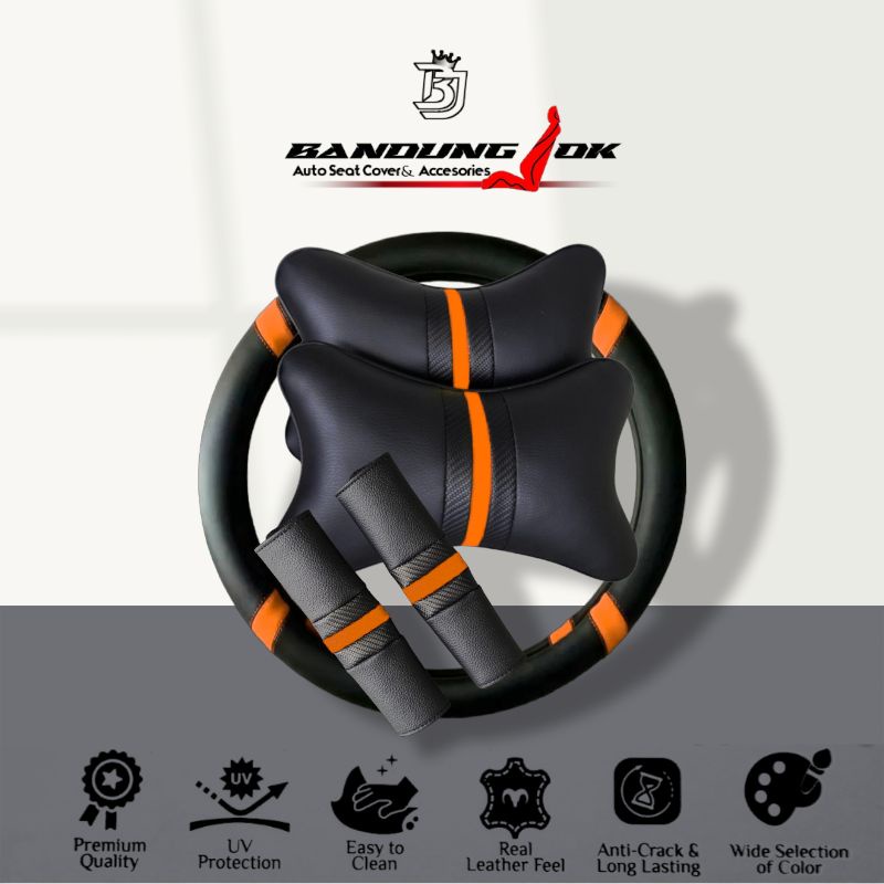 Bantal Mobil Set 3 in 1 Cover Stir Cover seatbelt Sarung Setir Kulit sintetis premium aksesoris mobil
