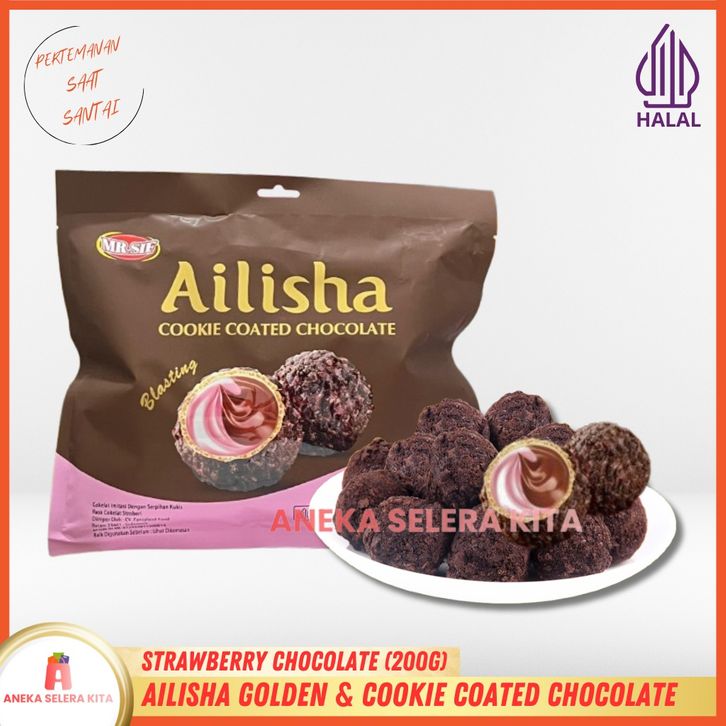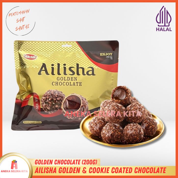 PROMO Ailisha Golden Chocolate & Ailisha Cookie Coated Chocolate / Coklat Cookies Ball Aneka Rasa