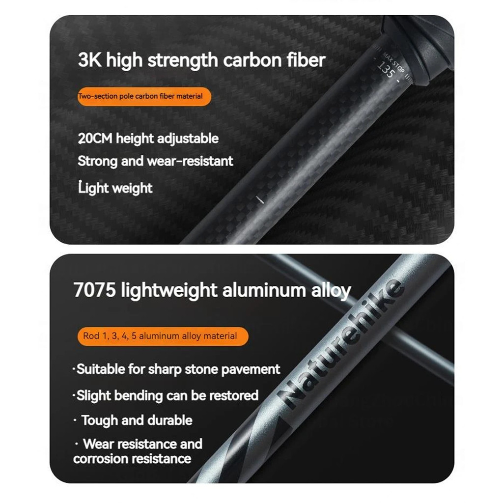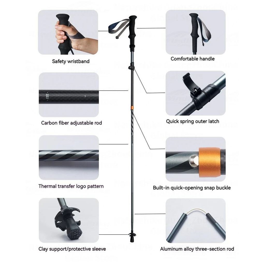 NATUREHIKE TREKKING POLE CHANG FENG CNK2450DS012 CNK2450DS013 CARBON ALUMINIUM FOLDING