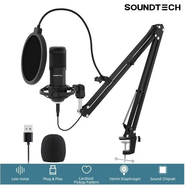 SOUNDTECH USB Microphone Mic Condenser Recording Streaming Podcast PC Original Official Store