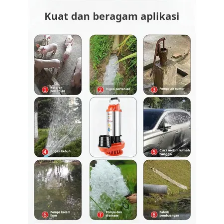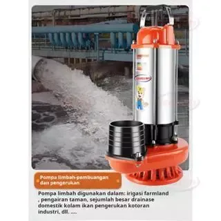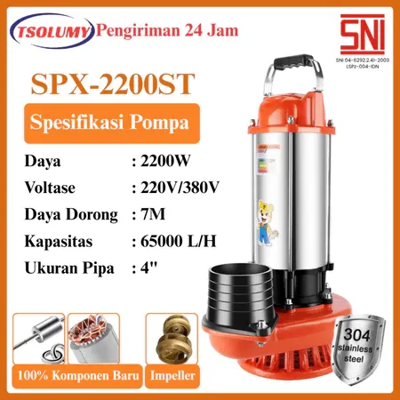 Tsolumy Pompa Celup Air Kotor 2200W Stainless Steel Submersible Pump 4inc Pompa Kolam lkan Banjir