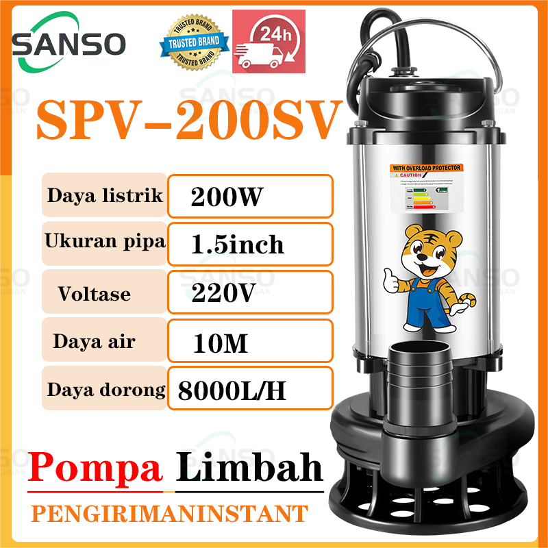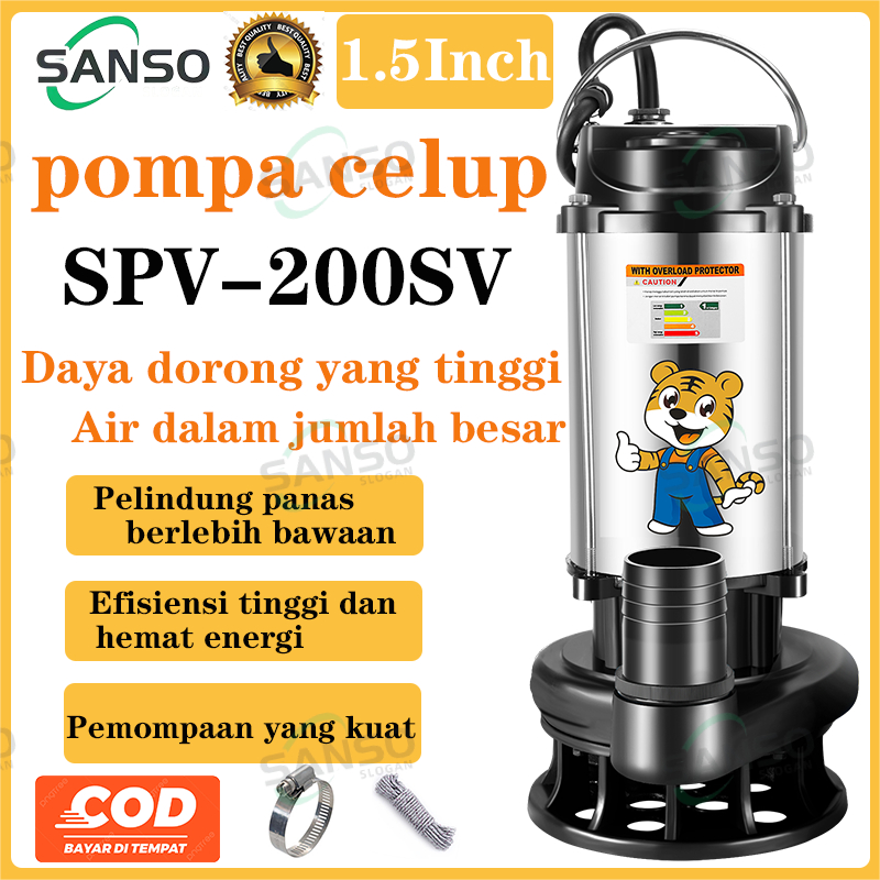 Pompa Celup Air Bersih Kotor SPV-200SV 1.5inch Stainless Steel Submersible Sewage Pump Mesin SANSO