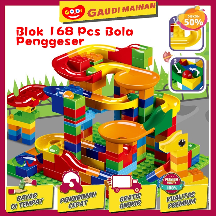 GAUDI 168PCS MAINAN BALOK BANGUNAN CHUTE ROLLERBALL/MINI TRACK SLIDE BALL BUILDING/MAINAN DIY PENDIDIKAN BALOK SUSUN