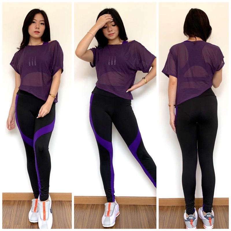 [Star] SETELAN SENAM AEROBIK AEROBIC ZUMBA YOGA GYM FITNESS 3IN1 OUTER TILE LEGGING ULTRA GARIS DAN BRA SPORT