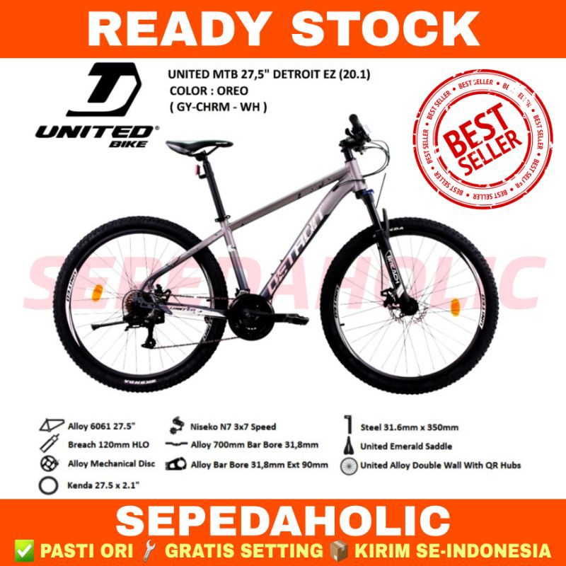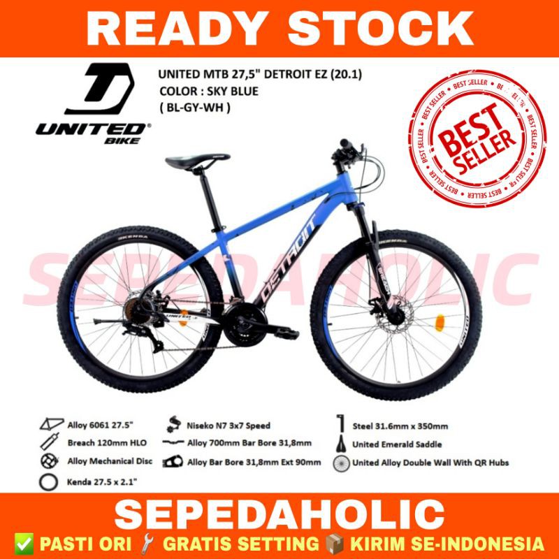 Sepeda Gunung 27.5 Inch MTB UNITED DETROIT EZ Alloy 21 Speed Garansi Resmi 5 Tahun