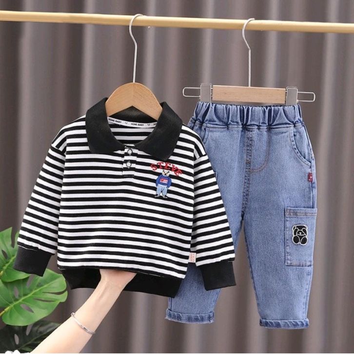 SETELAN BAJU ANAK LAKI LAKI/1 TAHUN/IMPORT/2 TAHUN/3 TAHUN/SETELAN BAJU DAN CELANA ANAK DENIM SALUR STEVE 1-5 TAHUN