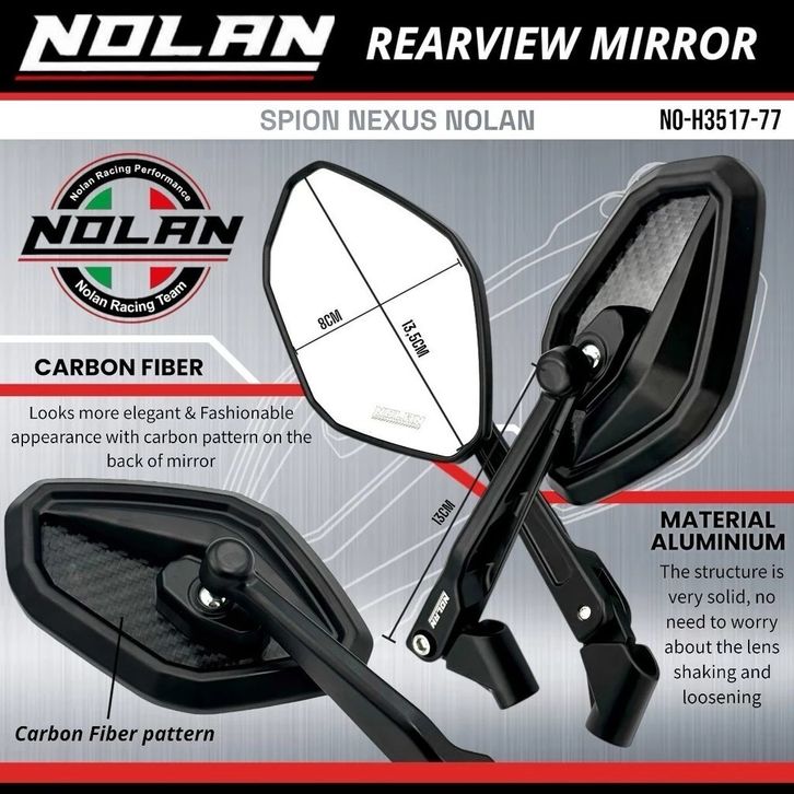 Spion NOLAN Nexus Black Motif Carbon Bahan Aluminium Alloy Universal Motor Bebek Dan Matic vario 160 vario 125 vario150