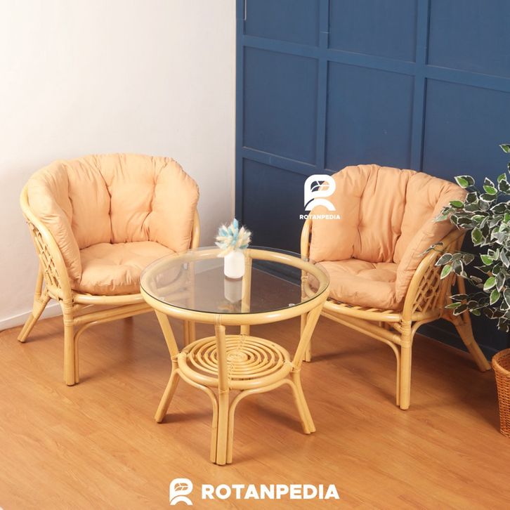 Kursi Teras Bahama Rotan Minimalis 1 Set | Kursi Tamu Rotan | Kursi Cafe Rotan - Rotanpedia