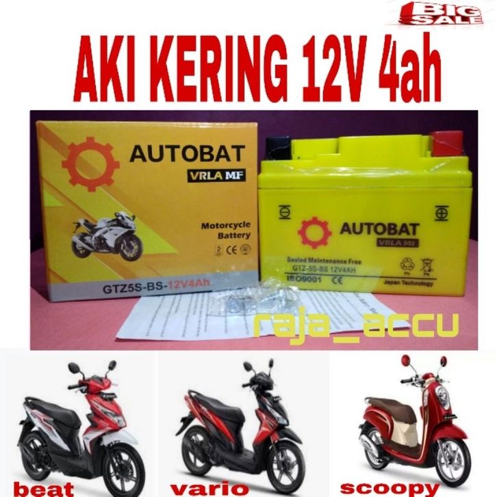 AKI MOTOR BEAT, VARIO 110, SCOOPY, MIO SOUL, MIO SOUL GT, MIO J, MIO M3, MIO Z, MEGAPRO.AUTOBAT YTX4L-BS/GTZ5S