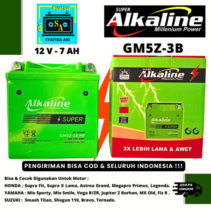 AKI MOTOR SUPRA FIT, MEGAPRO PRIMUS, ASTREA9rAND, LEGENDA GM5Z-3B ALKALINE MF 7Ah
