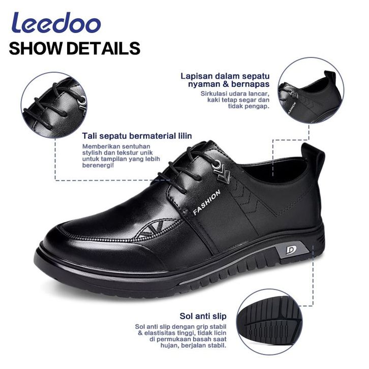 Leedoo Sepatu Pria Casual Sepatu Formal Sepatu Pantofel Cowok Sepatu Kulit Kerja Sneakers MC484
