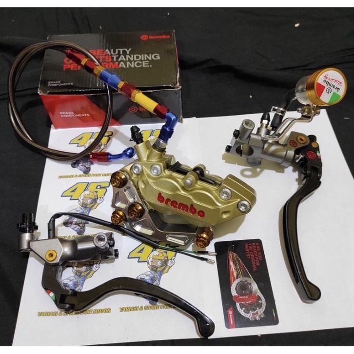 Paket Kaliper Brem-Bo Big Pot 4 Piston Axial Kiri + Master rem izumi Breket Kaliper Honda Beat-Vario 120-125-150 Scoopy