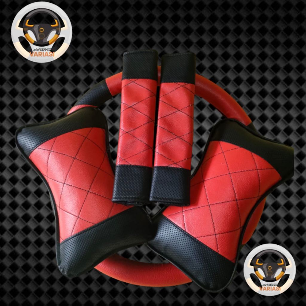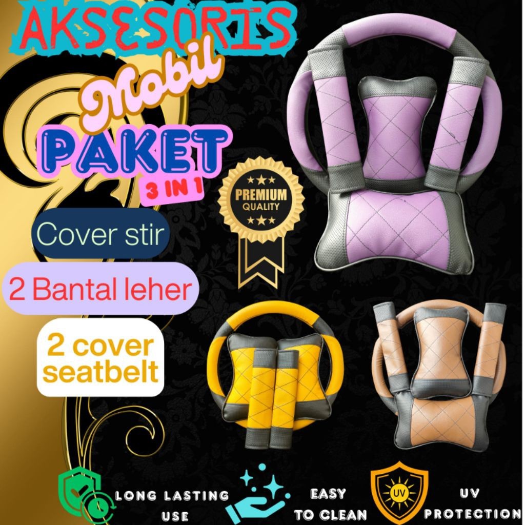 New Cover stir mobil paket 3 in 1 sarung stir variasi sabit aksesoris mobil 3in1 pelindung stir universal Bungkus Stir Mobil