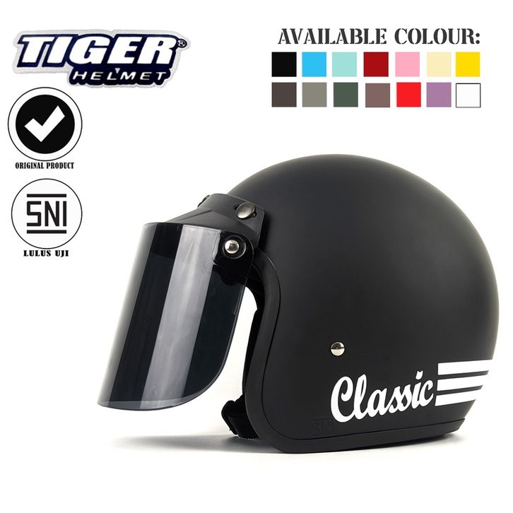 HELM BOGO TIGER ORIGINAL UKURAN M L WANITA CEWEK PRIA DEWASA HELMET RETRO CLASSIC ORI AESTETIC GLOSS DOFF KACA DATAR SNI