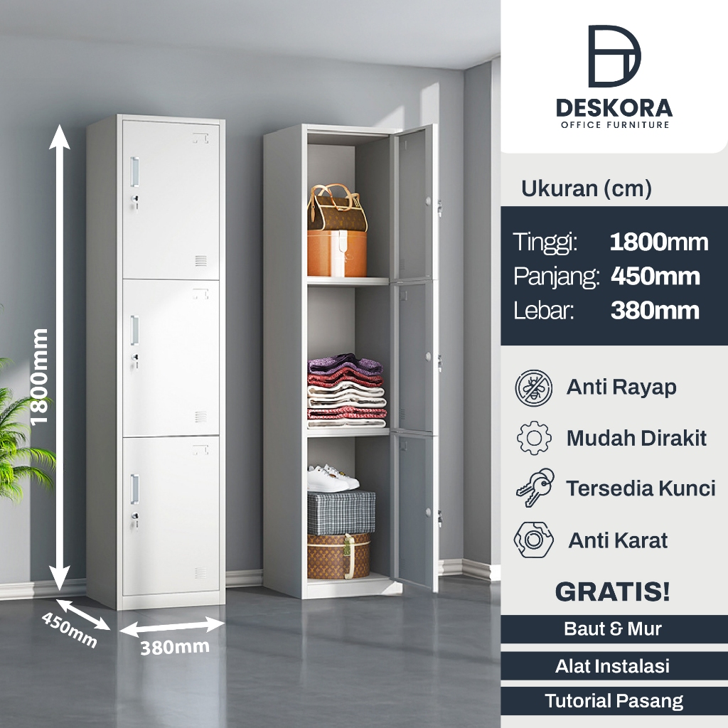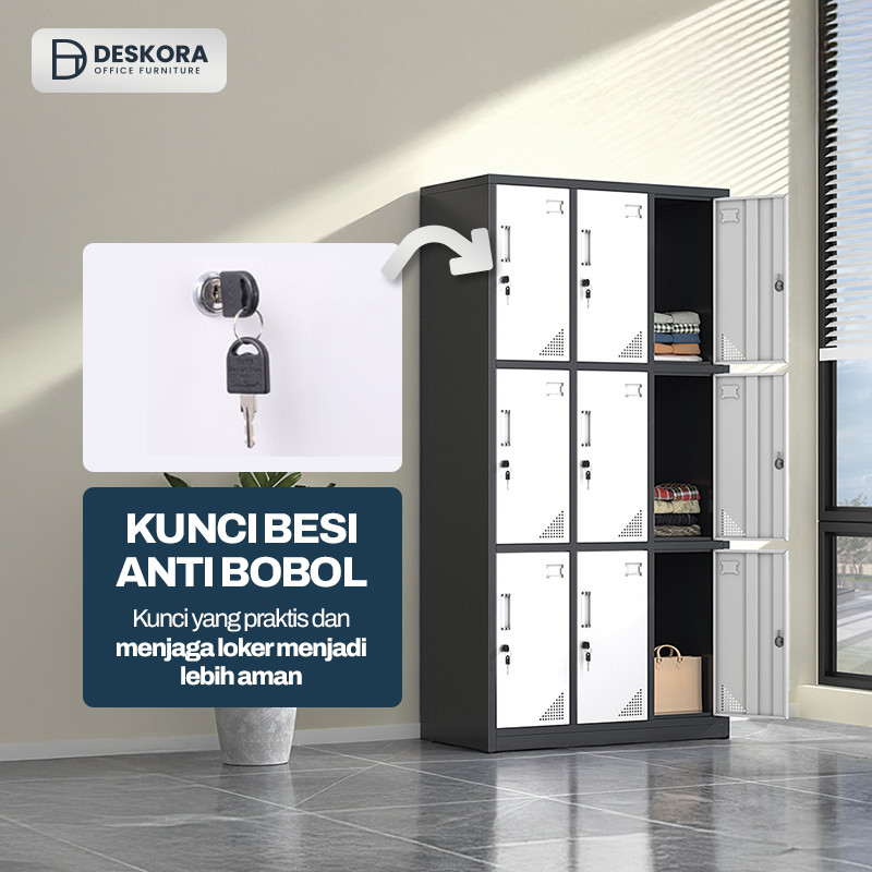 Lemari Loker Besi Kantor 2–15 Pintu Locker Besi Sekolah & Karyawan Anti Karat Garansi | Deskora