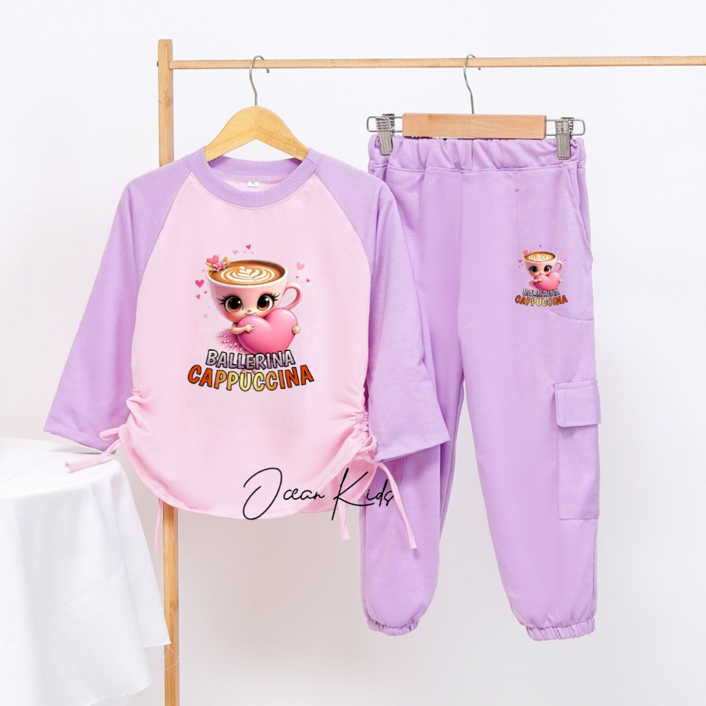 [Star]Setelan Ballerina Cappucina Anak Perempuan Viral Baju Anak Perempuan Setelan Joger Anak Terbaru 1-11 Tahun Motif B