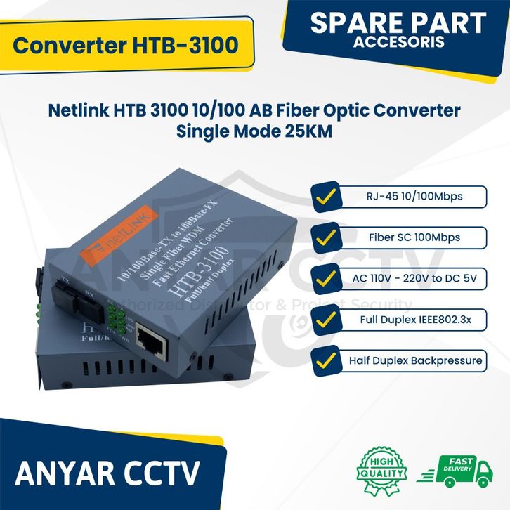 Fiber Optical Media Converter HTB 3100AB 10/100Mbps Single Mode 25KM