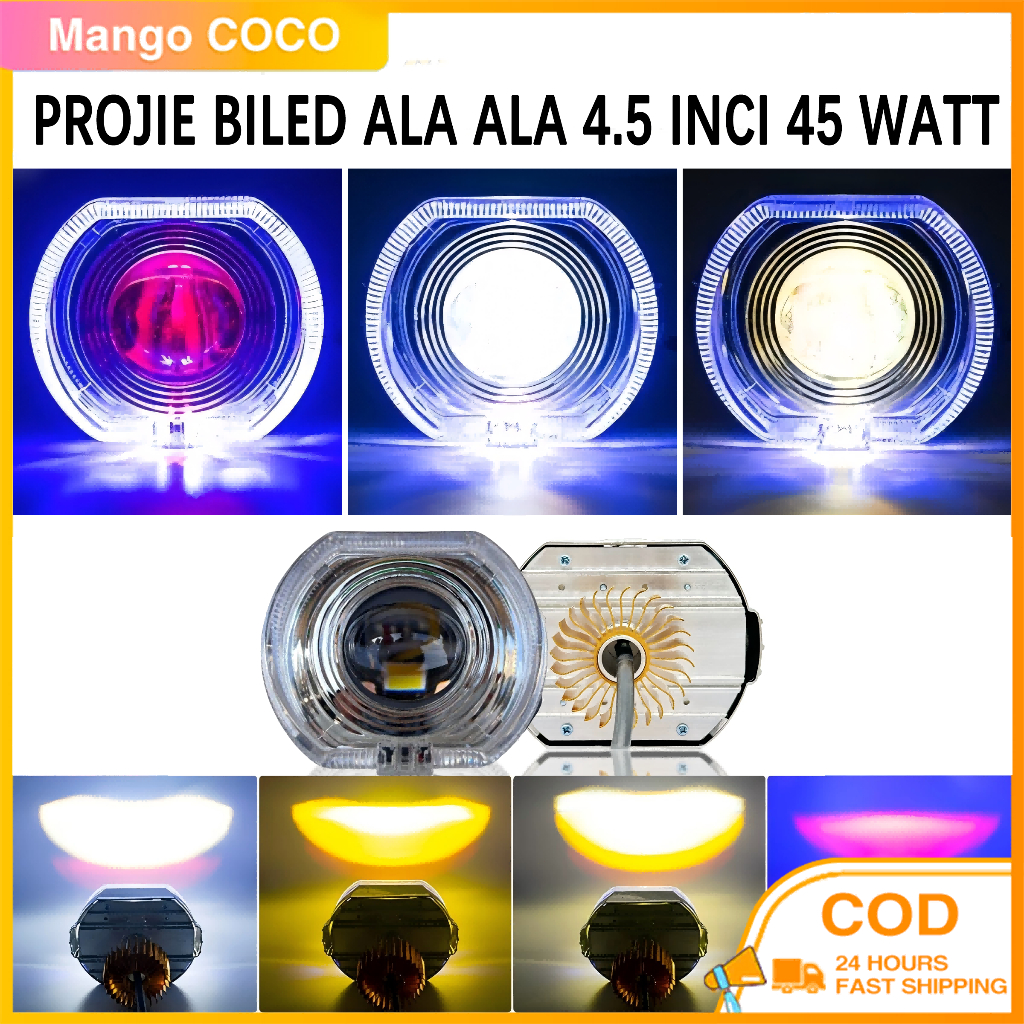 Projie Biled Ala Ala 4.5 inci Shroud Hitam Lampu Biled Cut Off Shroud + Devil Full Aluminium Waterproof Lampu Motor+45WA