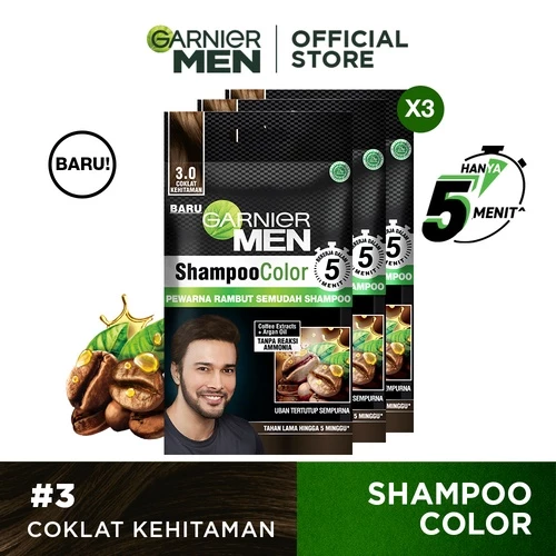 (PAKET HEMAT ISI 3) Garnier Men Shampoo Color Hair Color #3 Coklat Kehitaman 20ml - Untuk Rambut Lebih Sehat
