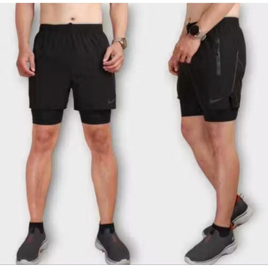 Celana Running Pendek 2in1 Pria Wanita Legging Panjang Olahraga Fitnes Running Lari