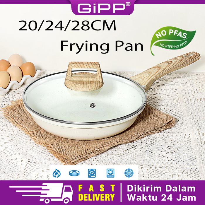 GiPP Panci Wajan Penggorengan Anti Lengket Dengan Tutup 20/24/28CM(White)