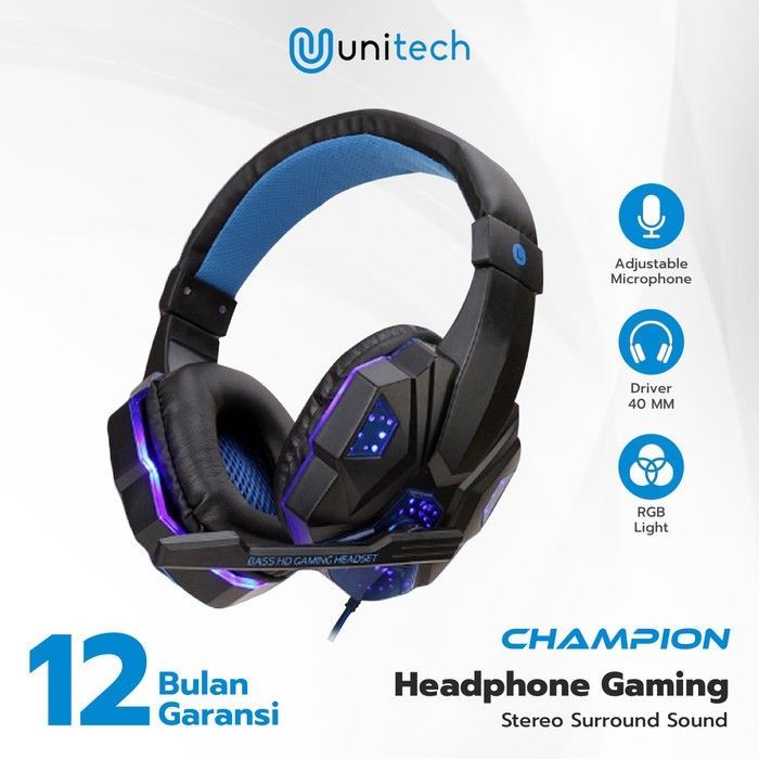 Headphone Gaming Kabel untuk Hp Champion Series Headset Super Bass + Mic + Lampu LED Gratis Splitter