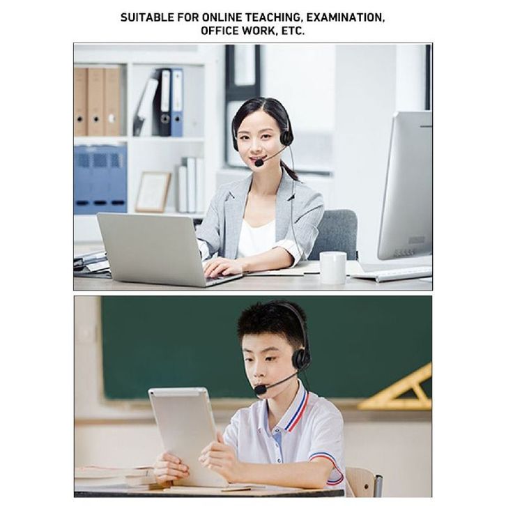 Headphone stereo dengan mikrofon dan single jack 3.5mm Cocok untuk pembelajaran di kantor