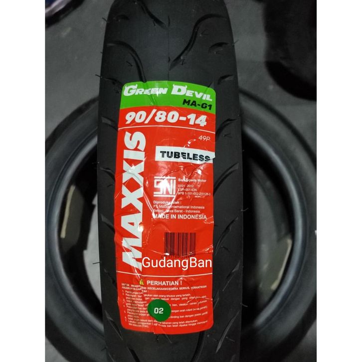 (RING 14) PROMO! Maxxis 90 / 80 - 14 Green Devil MA-G1 Ban Motor Matic TUBELESS Original FREE PENTIL