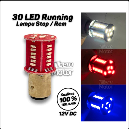 Lampu Rem Stop LED Bayonet 30 Mata Running Kedip Kaki 2 DC 12 V Universal Motor belakang