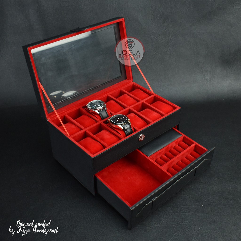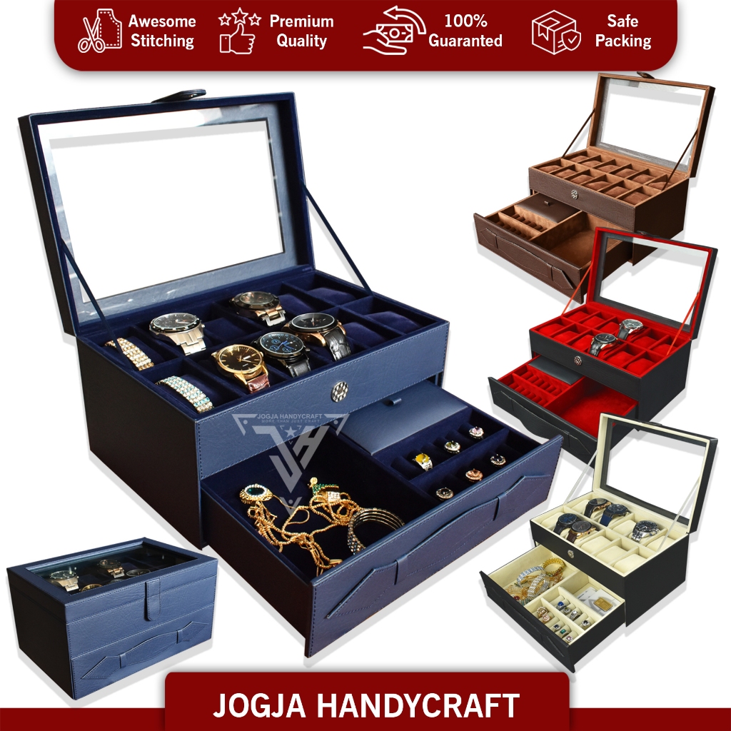 KOTAK JAM TANGAN ISI 12 MIX LACI TEMPAT PERHIASAN / WATCH BOX ACCESORIES ORGANIZER MINIMALIS