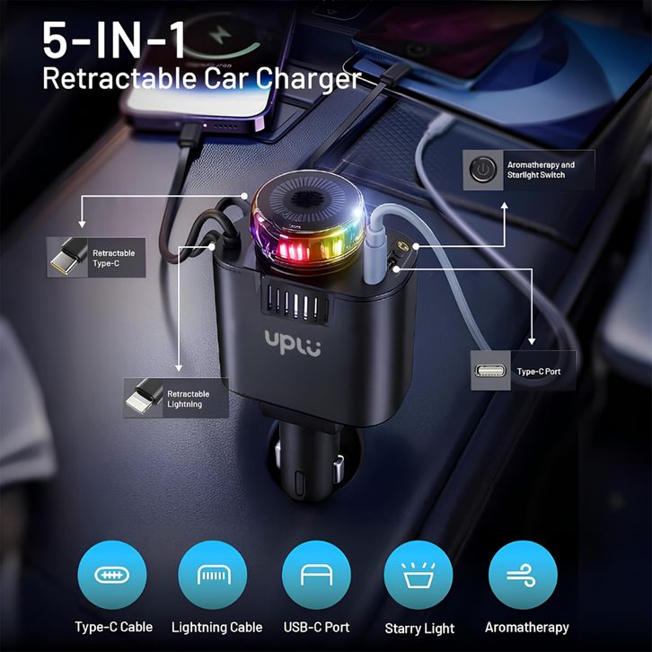 Car Charger Colokan Mobil Fast Charging Starry Light & Aromatherapy PD 120w Type C Iphone
