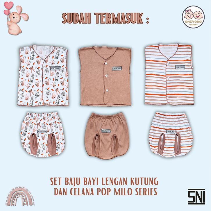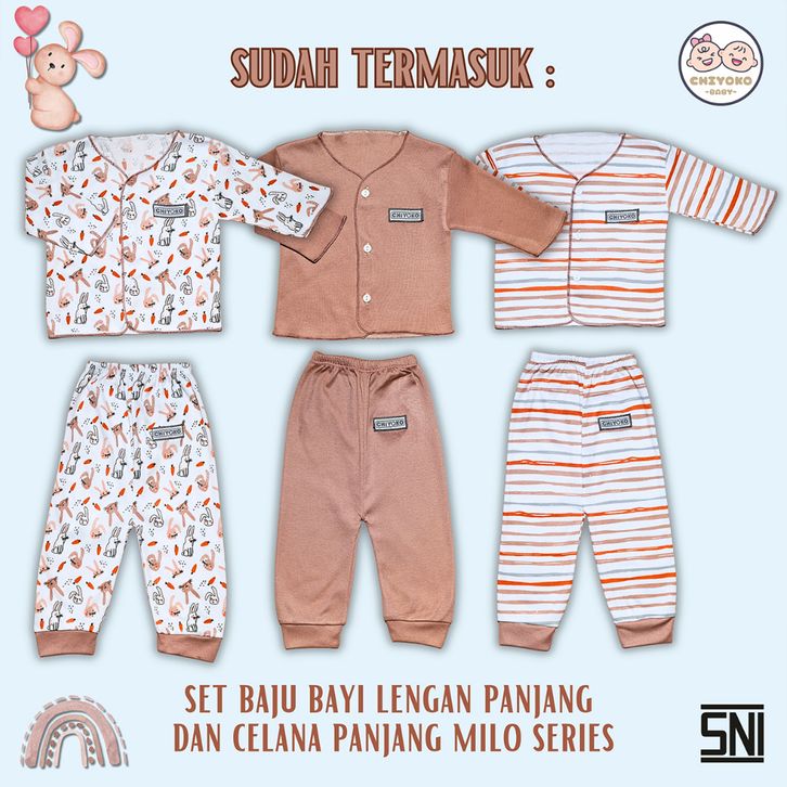 18 Pcs / 9 Stel Baju Bayi Celana Bayi Setelan Baju Bayi Baru Lahir SERIAN MILO Chiyoko Baby SNI Ibu dan Bayi