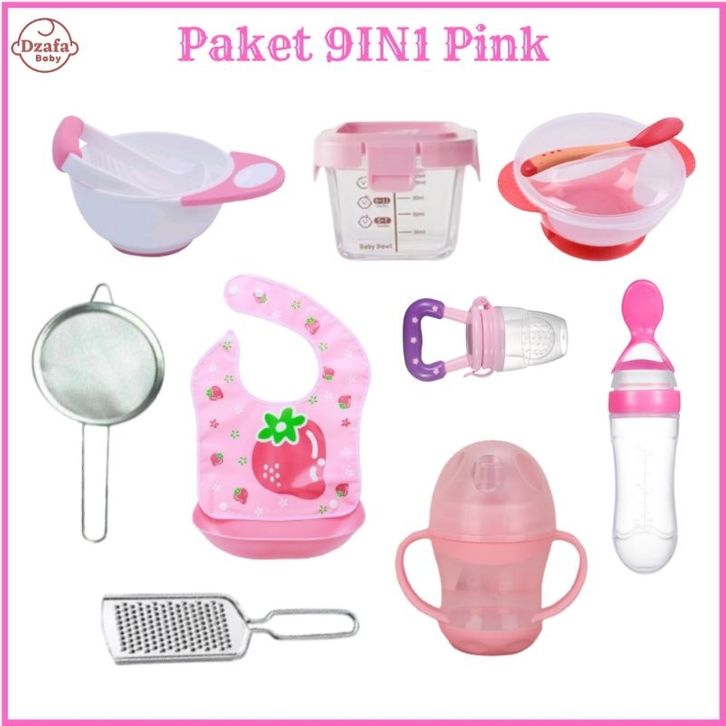 DBS15 PAKET LENGKAP ALAT MPASI9IN1 Wadah Mpasi Mangkok Penghancur Makanan Bayi BONUS Parutan Keju Ibu dan Bayi