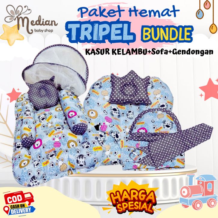 PAKET HEMAT TRIPEL BUNDLE Kasur Kelambu+Sofa Bayi+Selimut topi+Gendongan, Kado lahiran, sudah SNI Ibu dan Bayi