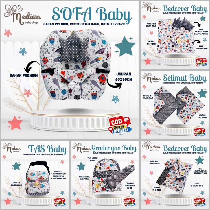 PAKET HEMAT SOFA BAYI/BEDCOVER/SELIMUT TOPI/GENDONGAN SAMPING/TAS BAYI lengkap hemat bayi baru lahir Ibu dan Bayi