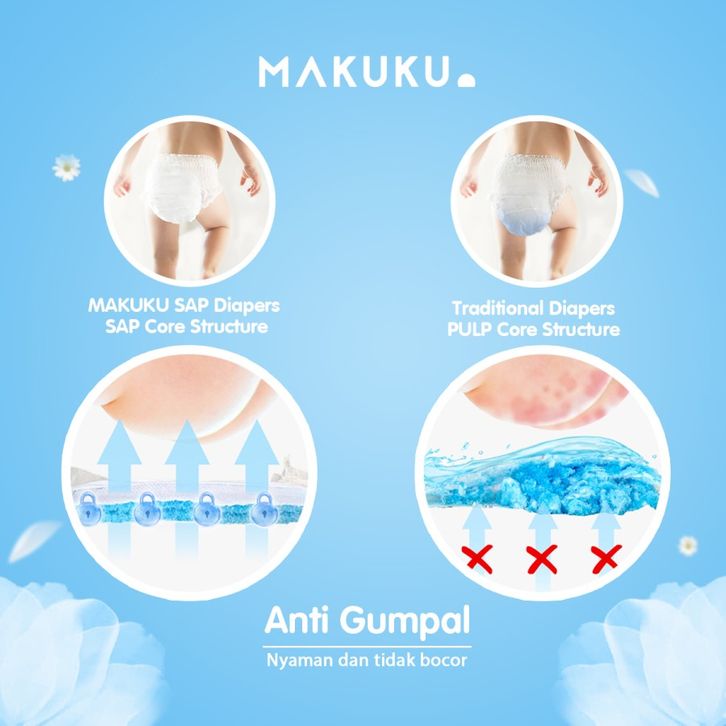 MAKUKU Slim NB28 S38 M32 L34 XL32 XXL28 SAP Diapers | Popok Bayi Tipis Daya Serap Tinggi Ibu dan Bayi