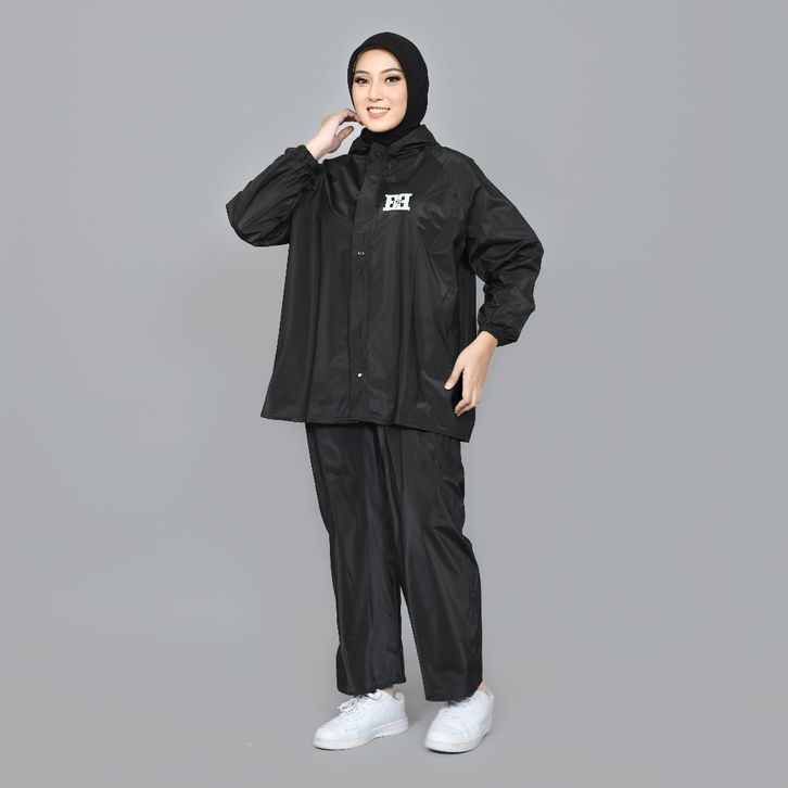 Promo Jas Hujan Pria Wanita Dewasa Axio Original ENJEBE Jas Hujan Setelan Satu Set Baju Dan Celana Warna Hitam Pekat Ba