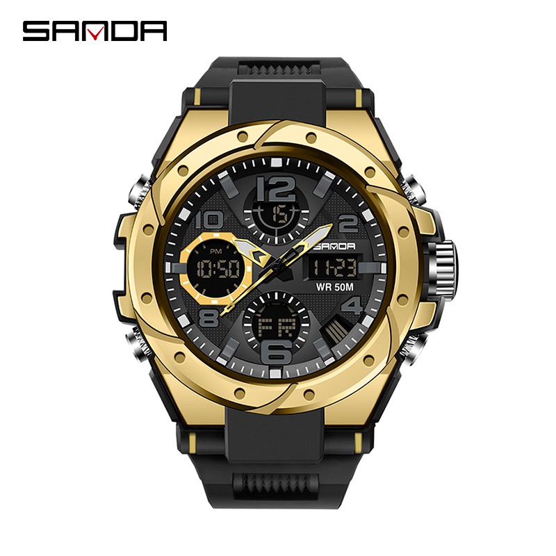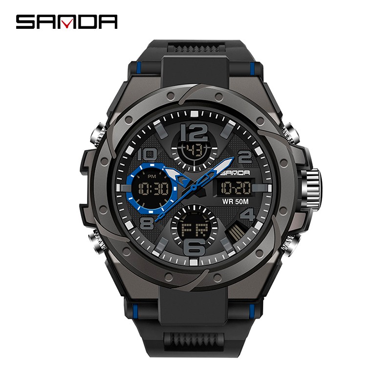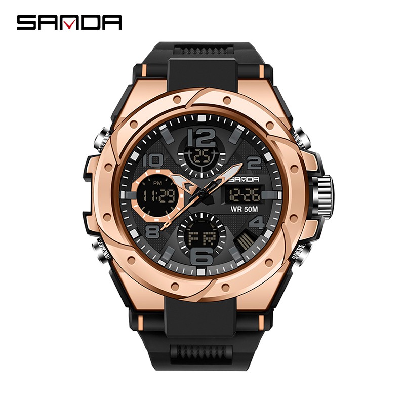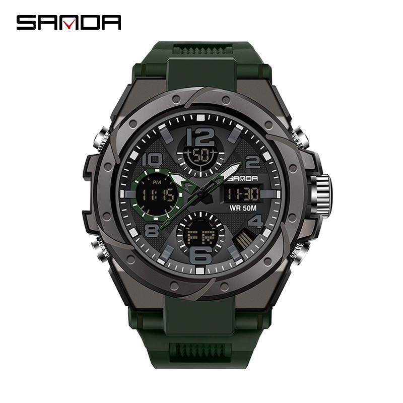 SANDA 6008 Jam Tangan Pria Digital Analog Tali Rubber Chronograph Anti Air CURRENOS