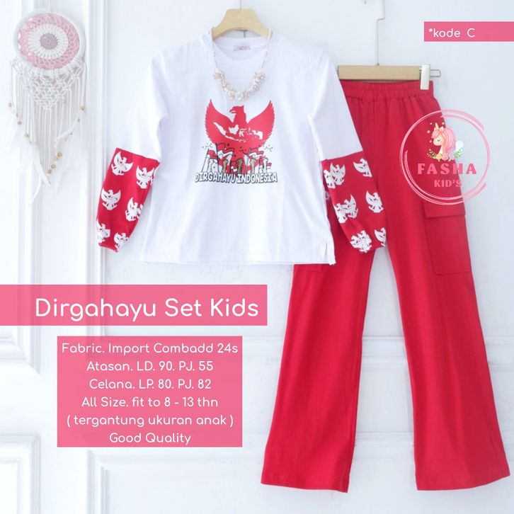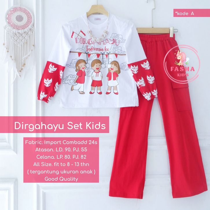Baju Dirgahayu Anak Shopakids Dirgahayu Set Kids Setelan Baju Jalan Sehat Agustus HUT RI Anak Perempuan Warna MerahPuti