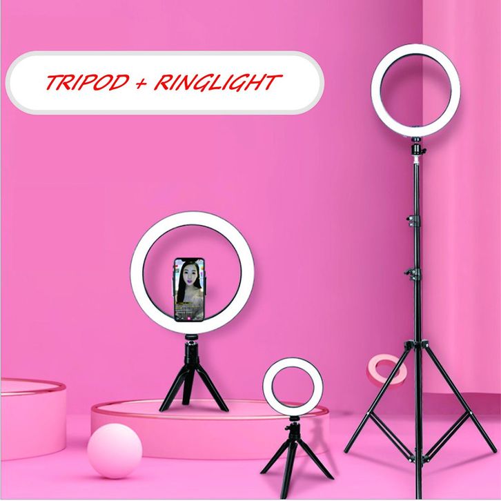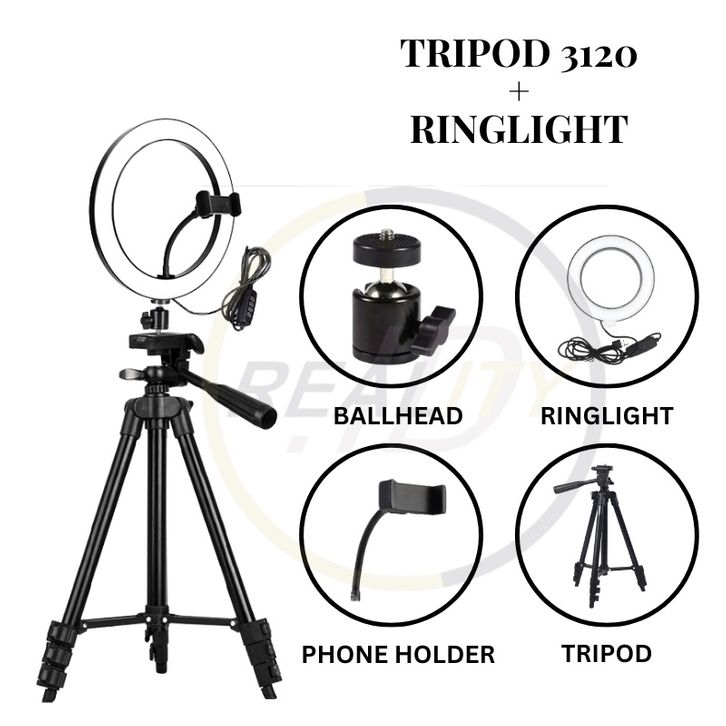 BARU [PAKET] TRIPOD 1 METER 3120 + RINGLIGHT 26 CM / KOMBO HEMAT TRIPOD DAN RINGLIGHT MUA KAMERA HANDPHONE DLSR