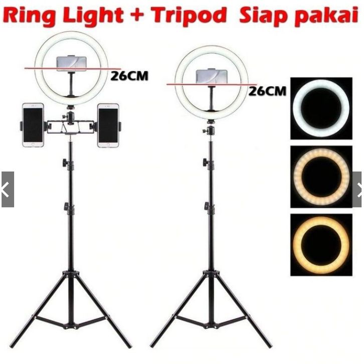 TERBARU SAF ringlight 120 LED Diameter 26cm bisa 3 warna + Stand tinggi 2m anoch