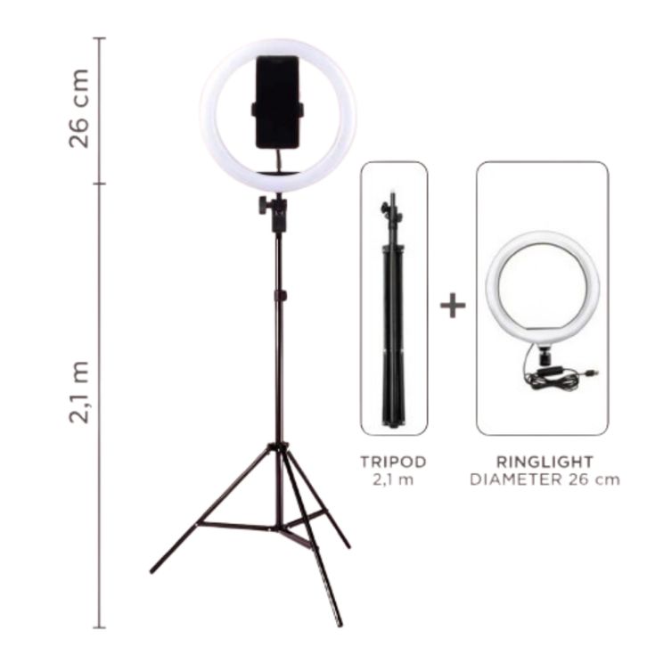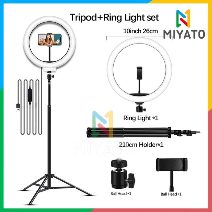 ORIGINAL Miyato Paket Lengkap Ringlight 26CM + Tripod Multi 2.1m Ringlight Led Lampu Make Up Vlog Lampu