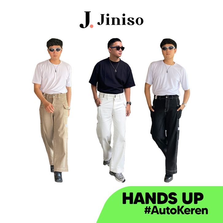 Celana Jiniso Cutbray Jumbo JINISO Cargo Baggy Denim Jeans Pria
